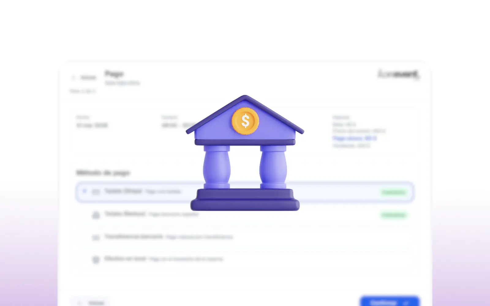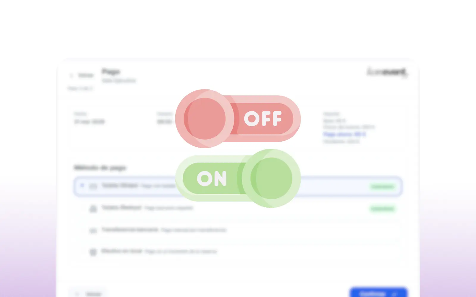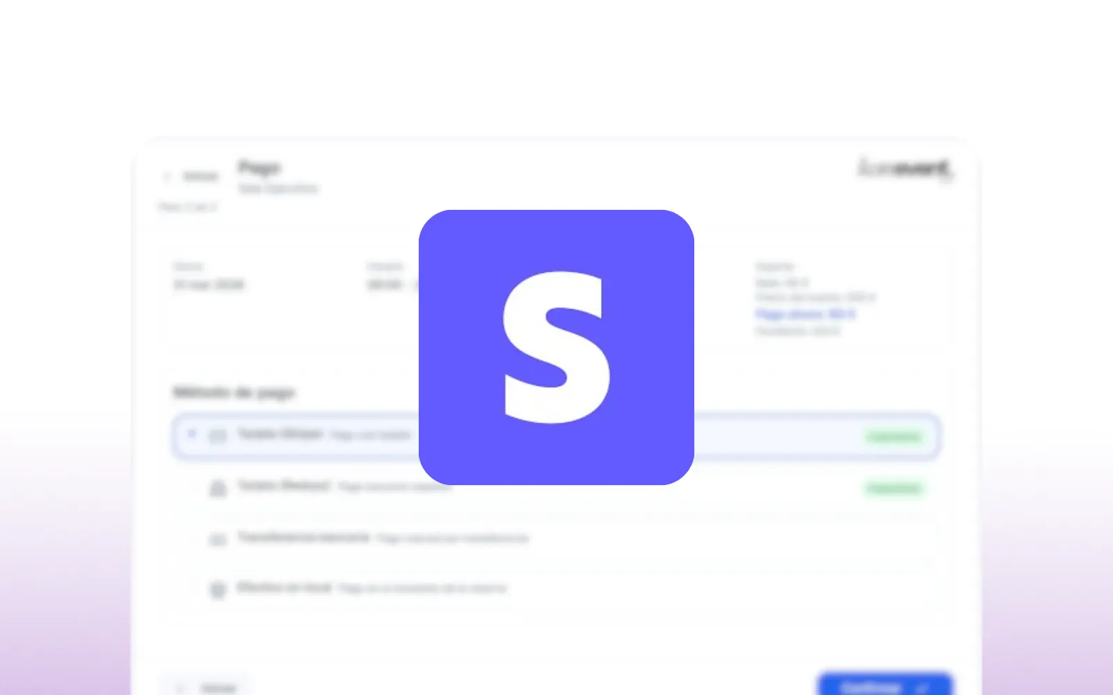 Activa y muestra Redsys, Stripe, transferencia o pago en local.