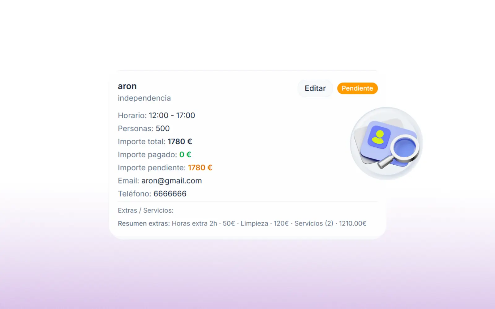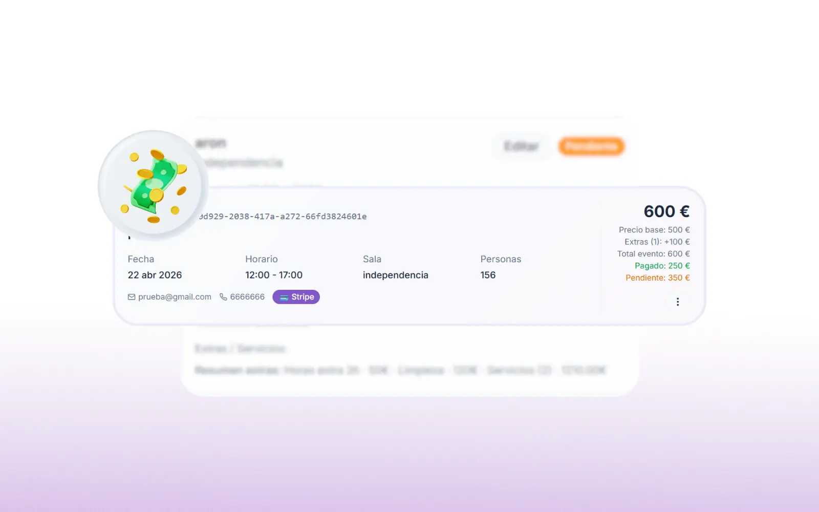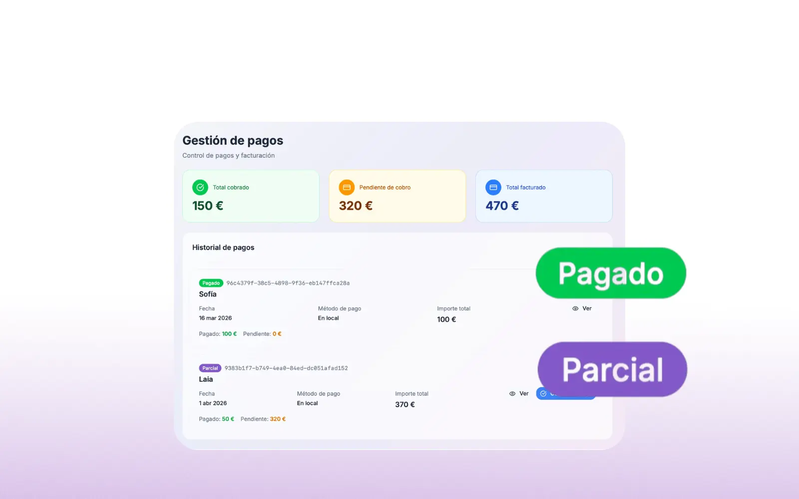 Visualiza Total, Pagado y Pendiente directamente en la reserva.