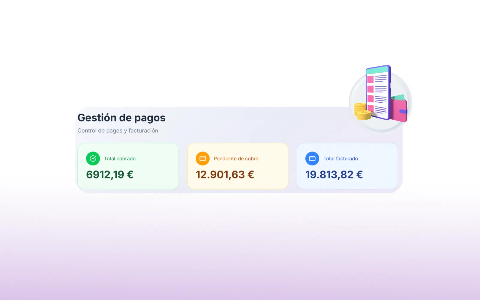 Visualiza Total cobrado, Pendiente y Total facturado de un vistazo.