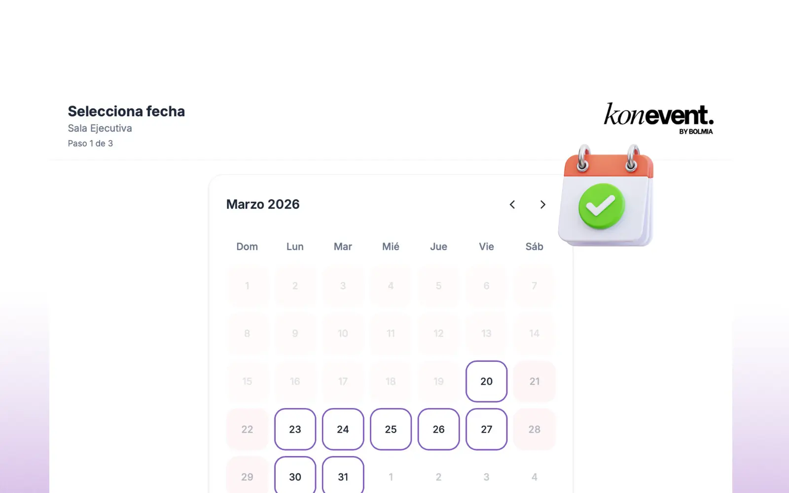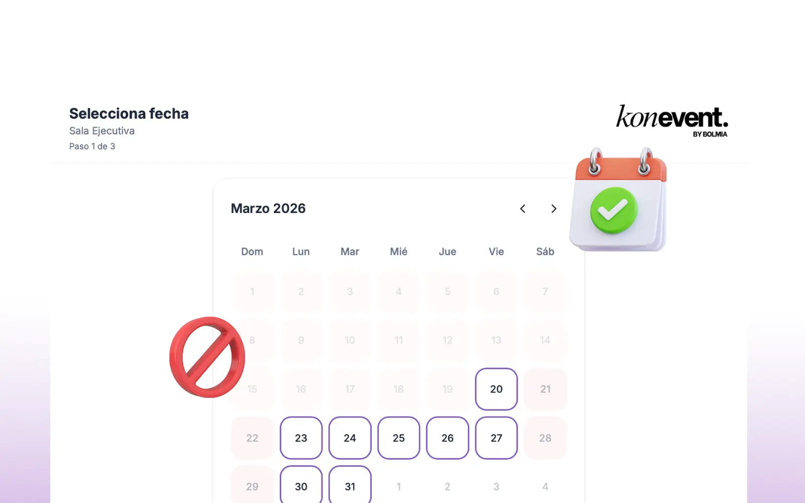 Empieza hoy y descubre cómo Konevent simplifica reservas, pagos y la gestión completa de tu espacio.