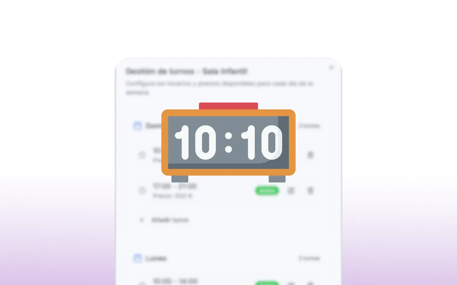 Configura salas que funcionan por duración, con precio por hora, límites de tiempo y disponibilidad real.